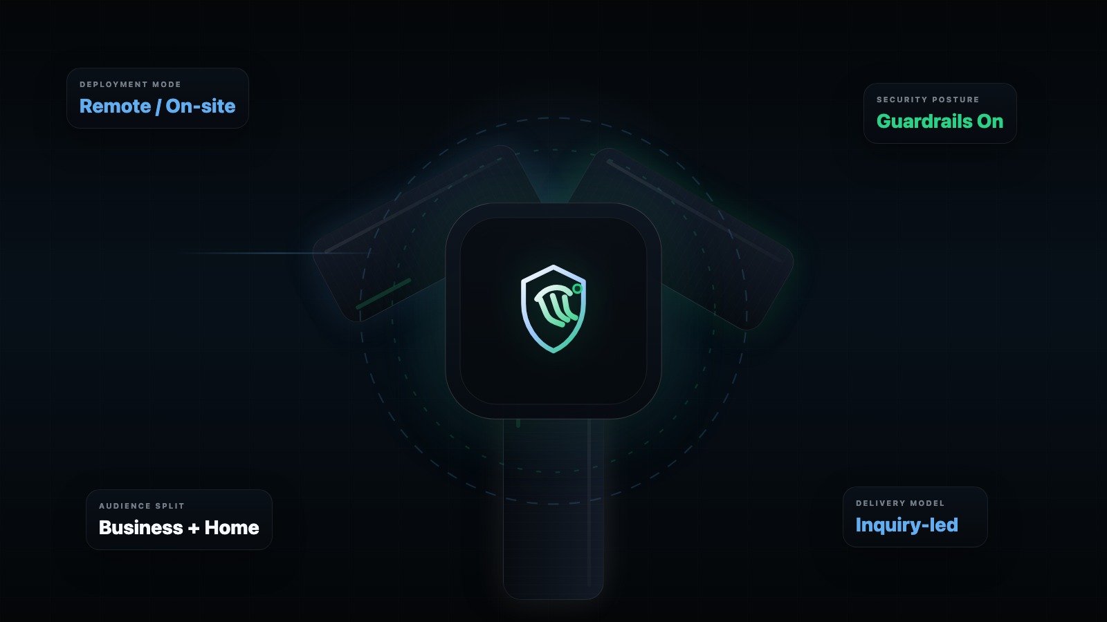 Fastest path for both business and home customers. Discovery, install, hardening, workflow setup, and handoff happen over remote access with clear approval boundaries.